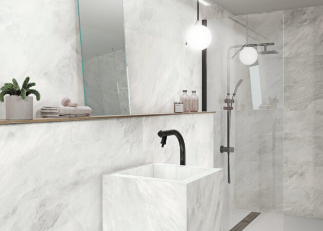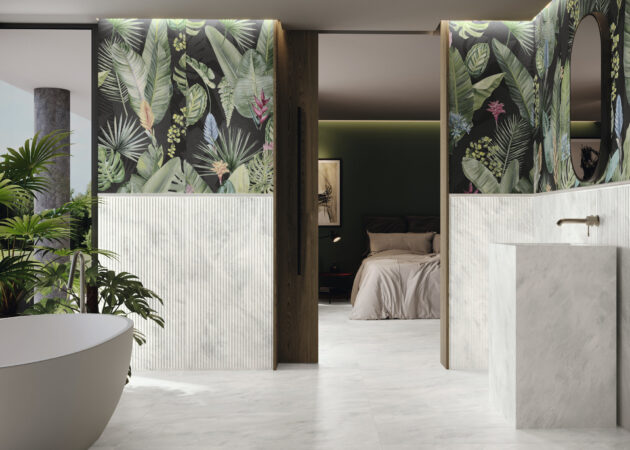The marble that inspired Alexandria is a precious stone from Greece that exudes luxury. The collection features a white base where the veins ripple across the surface, giving the impression that they have been subtly touched by the breeze. Soft to the touch, Alexandria pieces are protected by a special glaze, as is their Spektra Matt relief. They offer a polished grain finish that adds exclusivity, making them the ideal choice for combining with other collections.