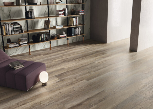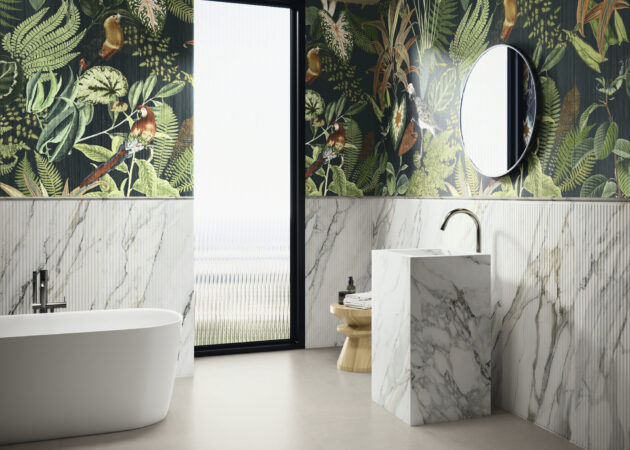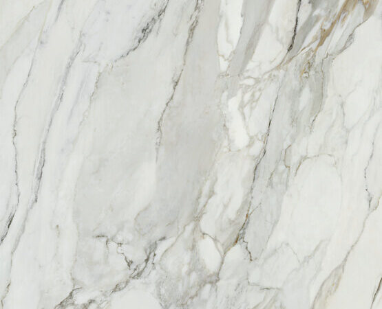 The Apuan Alps hide wonders in their mountain ranges. Among them are their Calacatta Corchia marble quarries. This stone stands out for its elegant and powerful graphic appeal. Its sophisticated appearance served for centuries as flooring for Italy’s most important stately villas and churches. Its design features distinct cream-colored veins intertwined with gray threads. The result: pieces with glossy and matte finishes and a spectacularly smooth Kleeb Matt relief.