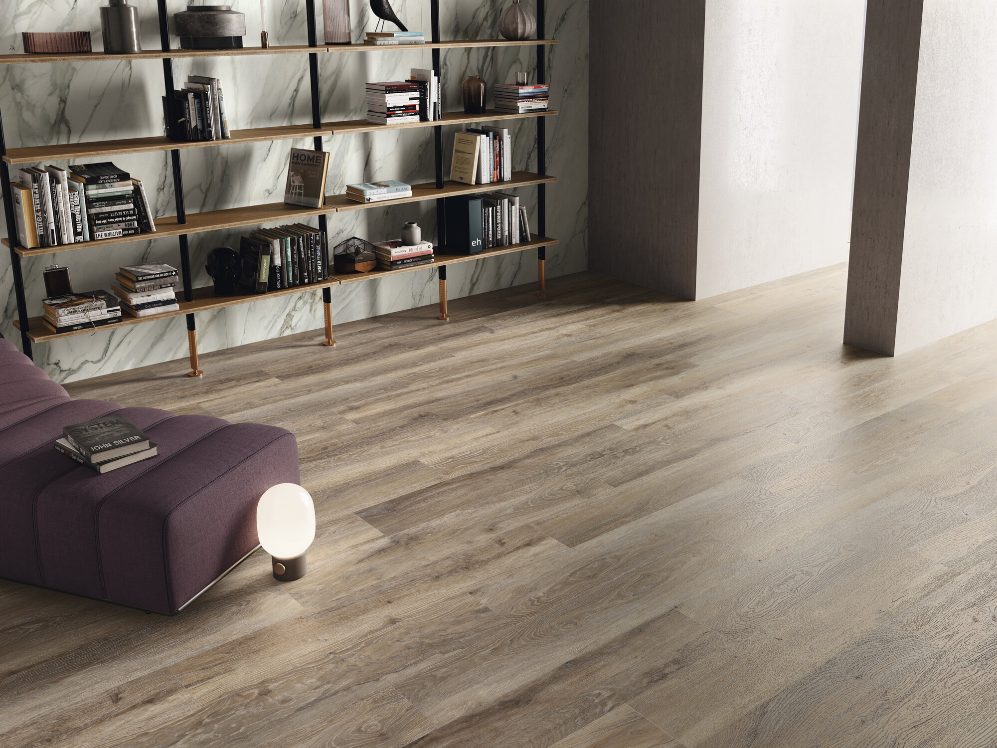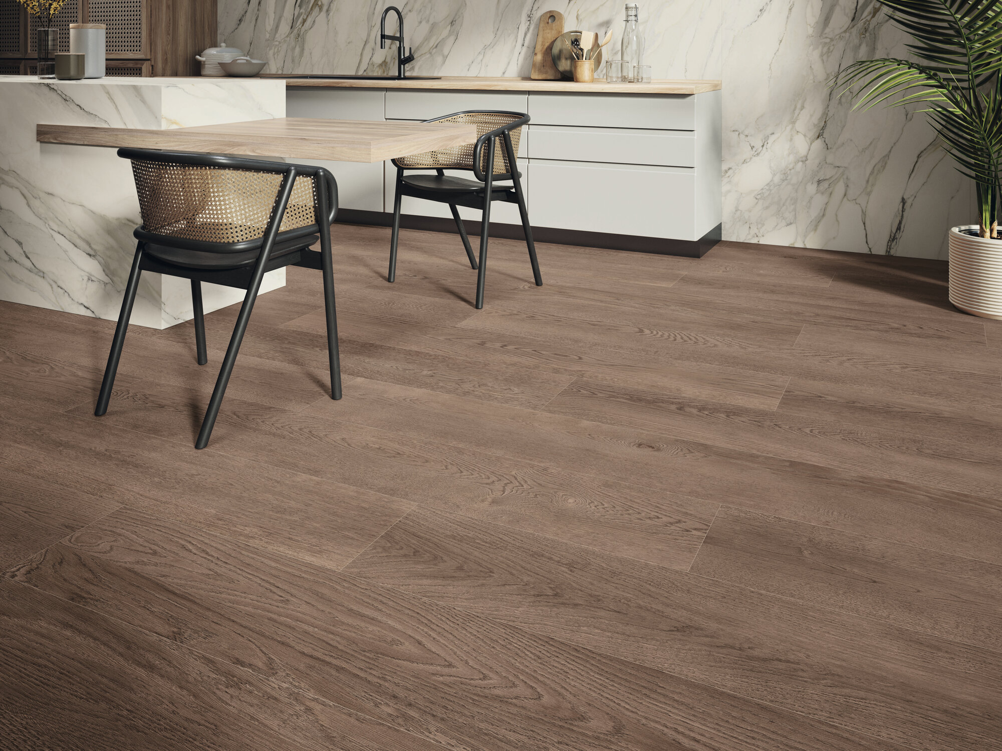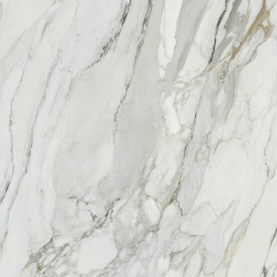The Apuan Alps hide wonders in their mountain ranges. Among them are their Calacatta Corchia marble quarries. This stone stands out for its elegant and powerful graphic appeal. Its sophisticated appearance served for centuries as flooring for Italy’s most important stately villas and churches. Its design features distinct cream-colored veins intertwined with gray threads. The result: pieces with glossy and matte finishes and a spectacularly smooth Kleeb Matt relief.