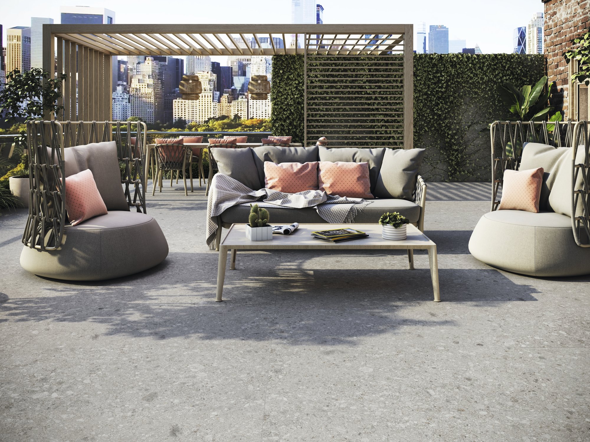 Ceppo di Gre is a typically Italian rock characterized by the presence of large, inlaid boulders. Its characterful graphic design has made it a widely used material in architecture. The sophisticated and innovative Ceppo collection features bold styles like Party and Fantasy, offering an original, modern, and fun way to decorate any project.