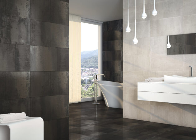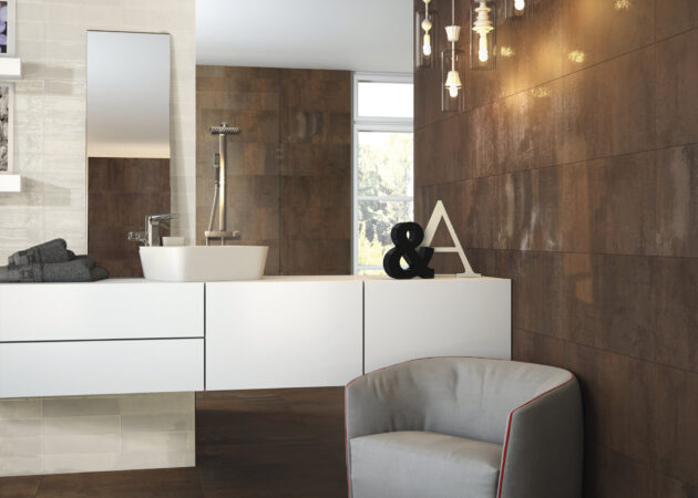 Metal always has a lot to say: Dorian, the collection centered on this material, offers a variety of formats worthy of its characteristics. With a color range that balances whites, blacks, and maroons, this collection can be a central feature of kitchens and bathrooms. Its spectacular adaptation to surrounding environments makes metal a firm choice for its great ability to achieve visual perfection. Rectified and finished in a matte finish, this collection meets the expectations of the most demanding spaces.