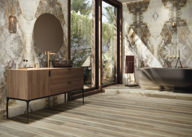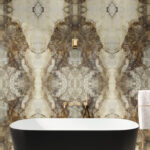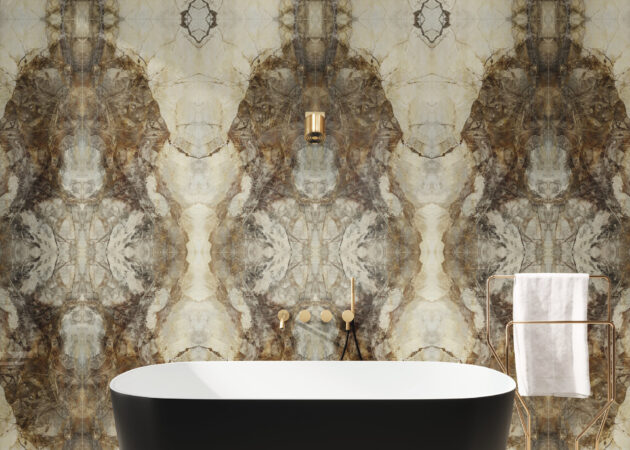 Elegance takes on a new dimension with our Gold Hard marble. An extension of the Invisible Gold collection, this marble is updated with a more powerful hue that intensifies the color of its veins. The veined design creates a striking contrast with the neutral, polished base. A graphic design that draws attention at a glance and conveys serenity and elegance. Specially designed for refined and sophisticated rooms, this marble stands out for enhancing beauty with undeniable technical qualities: mechanical strength, resistance to absorption, and ease of cleaning.