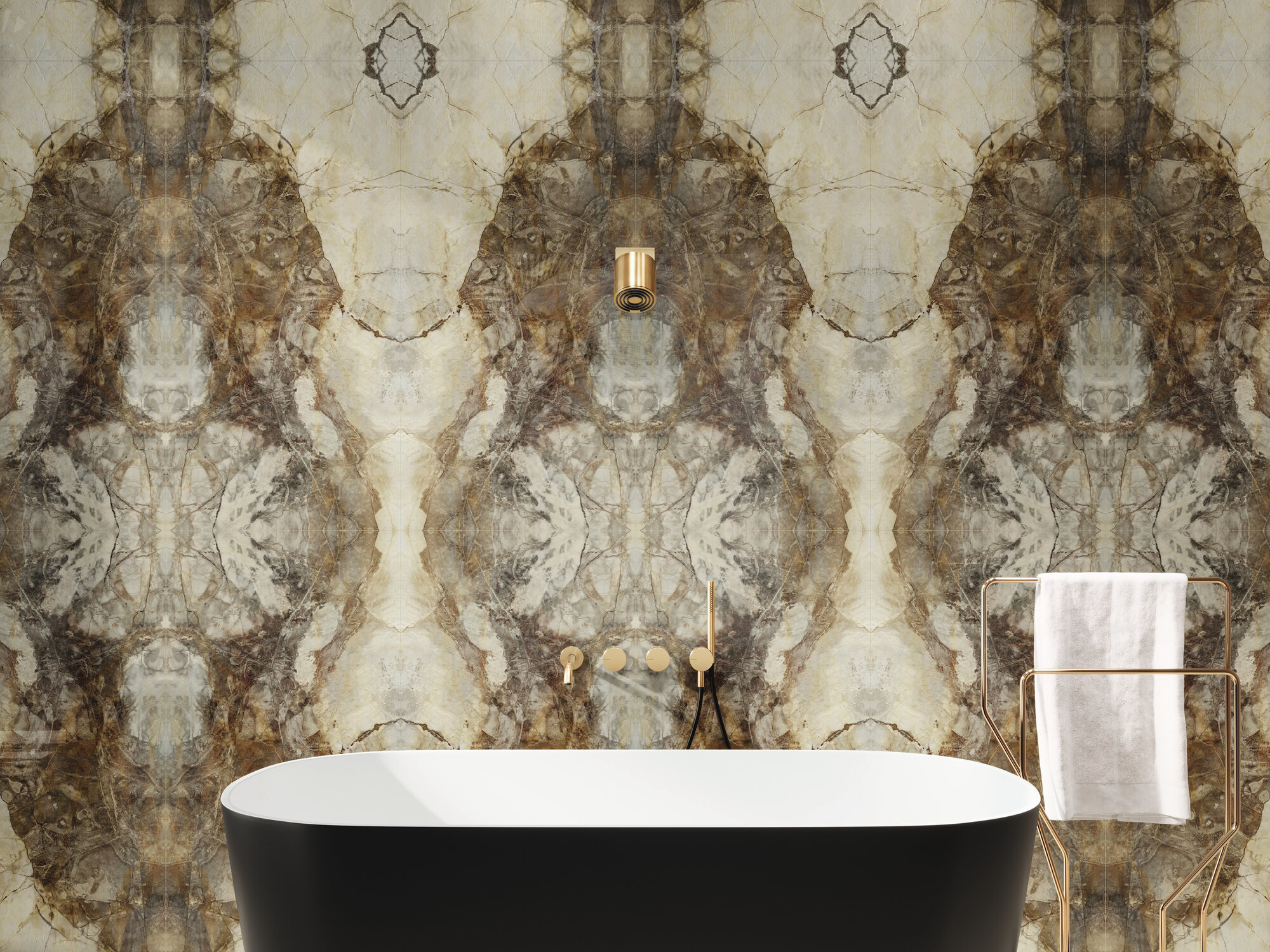 Elegance takes on a new dimension with our Gold Hard marble. An extension of the Invisible Gold collection, this marble is updated with a more powerful hue that intensifies the color of its veins. The veined design creates a striking contrast with the neutral, polished base. A graphic design that draws attention at a glance and conveys serenity and elegance. Specially designed for refined and sophisticated rooms, this marble stands out for enhancing beauty with undeniable technical qualities: mechanical strength, resistance to absorption, and ease of cleaning.