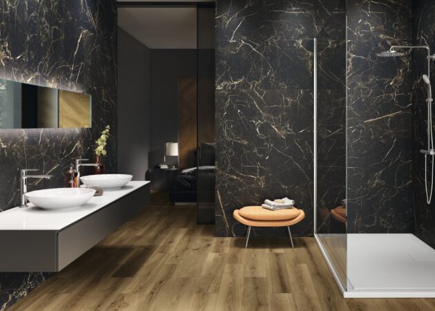 Distinguished and versatile, Night Lux is not just another porcelain marble. Its intense black color and irregular tan and white veining recall a painter’s strokes on a completely black canvas. It is precisely this hue that creates very elegant ambiances and creates spaces full of design. This collection evokes contemporaneity and transcends fashions and trends to conquer the spaces of homes and large projects. Night Luxe is, without a doubt, one of the most solid, elegant, sophisticated, and compelling offerings in the APE Group marble scene.