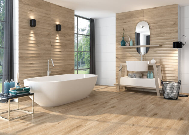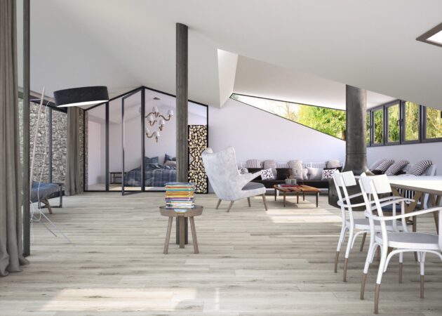 Oregon is a highly sustainable and environmentally friendly ceramic collection that brings the warmth of wood to ceramics. Oregon’s authenticity is achieved through its large format and its rectified porcelain construction. The result is one of those floors that are just begging to be walked on. The collection is structured in different variants and colors that harmoniously contrast with the soft grain of its pieces. A fun, invariable material that withstands any kind of treatment, a material that invites you to place it on both the floor and the wall, allowing you to enjoy the warmth of wood at all times.