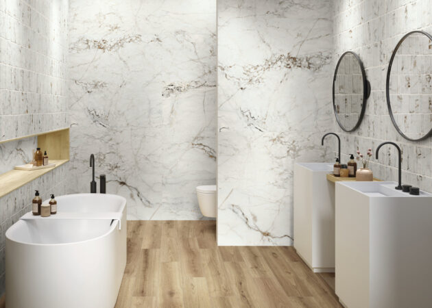 Oxyd Jewel is the result of painstakingly selecting fine, elegant veins and various Breccia Capraia marbles originally from Tuscany, in the heart of the Apuan Alps, in the province of Massa-Carrara. In addition, this grand collection incorporates the “MIRROR” references, a bookmatching project that has us spellbound, with enigmatic, beautiful, and genuine compositions. With its distinctive beauty, Oxyd Jewel is available in polished and matte finishes.