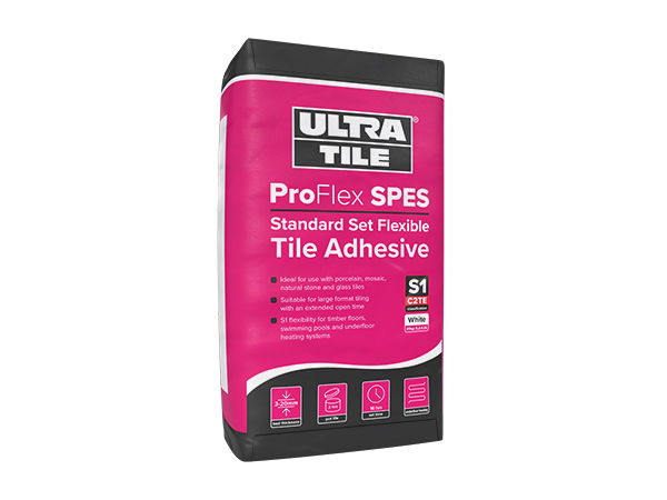 UltraTile ProFlex SPES is a single part, standard setting, flexible adhesive for wall and floor tiles. It is specially formulated with extended workability, enhanced adhesion and flexibility, making it ideal for areas where slight movement or vibration can occur. Classified as S1 in accordance with EN 12004 it has the high level of deformation for greater tolerance to movement.