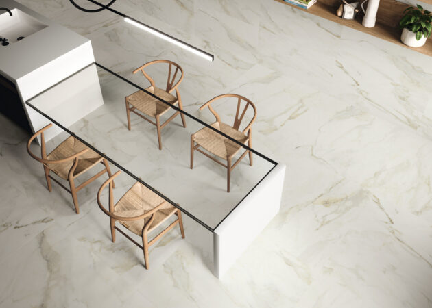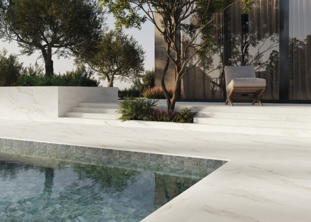 Supreme is a Calacatta marble that transforms the essence of nature into a true statement of elegance. Although inspired by classical grandeur, its contemporary design is perfectly suited to the present. Supreme’s graphic design is truly spectacular: a neutral base intertwined with fine golden veins, offering unparalleled sophistication and luminosity. Available in various finishes and formats, its versatility allows it to shine both indoors and outdoors. Supreme is the perfect choice for those looking to add majesty to their projects. It’s ideal for embellishing everything from an elegant living room to a modern bathroom or a glamorous terrace.