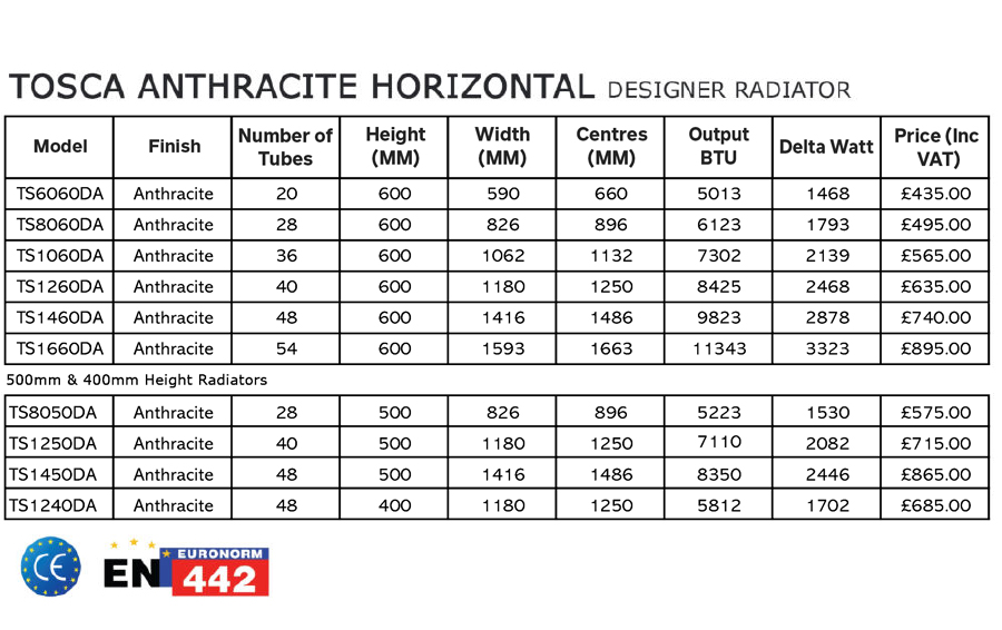 Be the first to review “TOSCA ANTHRACITE HORIZONTAL DESIGNER RADIATOR”