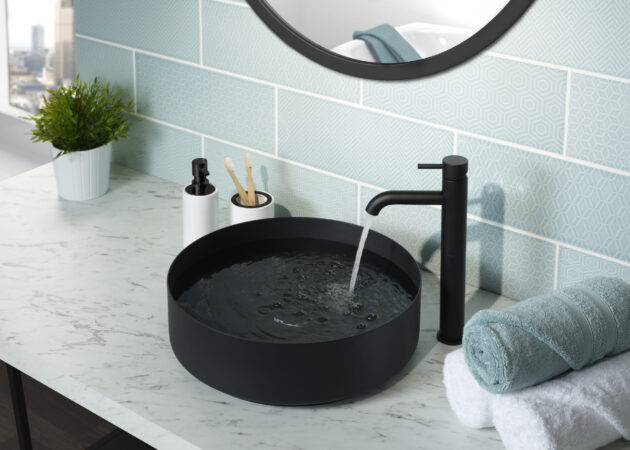VOS matt black single lever tall basin mixer, MP 0.5